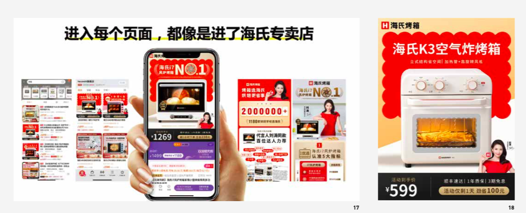 On the e-commerce channels, the visual presentation of oven products on the page is highly homogenized, and the product appearance is highly similar, making it difficult to distinguish. How can we stand out on the page shelves, attract consumer attention and clicks? This is the first key media application of the Super Sign - the shelf self-media.