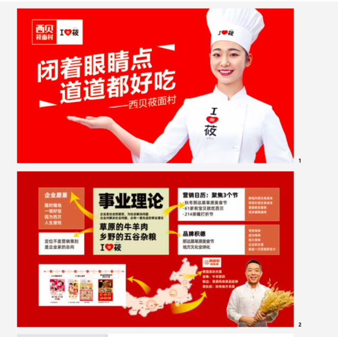 2.  Slogan: "Oat Noodles for Main Course, Jia Guolong Endorsed." Oat noodles are Xi Bei's signature and strategic product. Hua & Hua created purchase reasons with slogans like "Xi Bei Oat Noodle Village, Enter the United Nations" and "Oat Noodles for Main Course, Endorsed by Jia Guolong," driving the popularity of oat noodles and creating a bustling scene where everyone must eat oat noodles at Xi Bei Oat Noodle Village.
