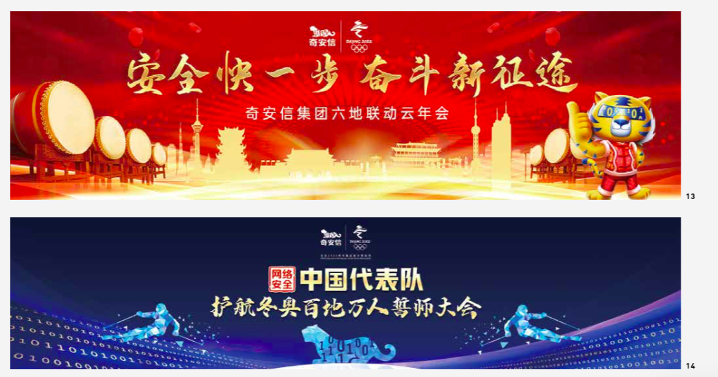 Revolve around the brand slogan " One step faster to safety", "QI AN XIN, One step faster to Cybersecurity " and the Winter Olympics marketing slogan "Winter Olympics standard, QI AN XIN, One step faster to Cybersecurity " were created.